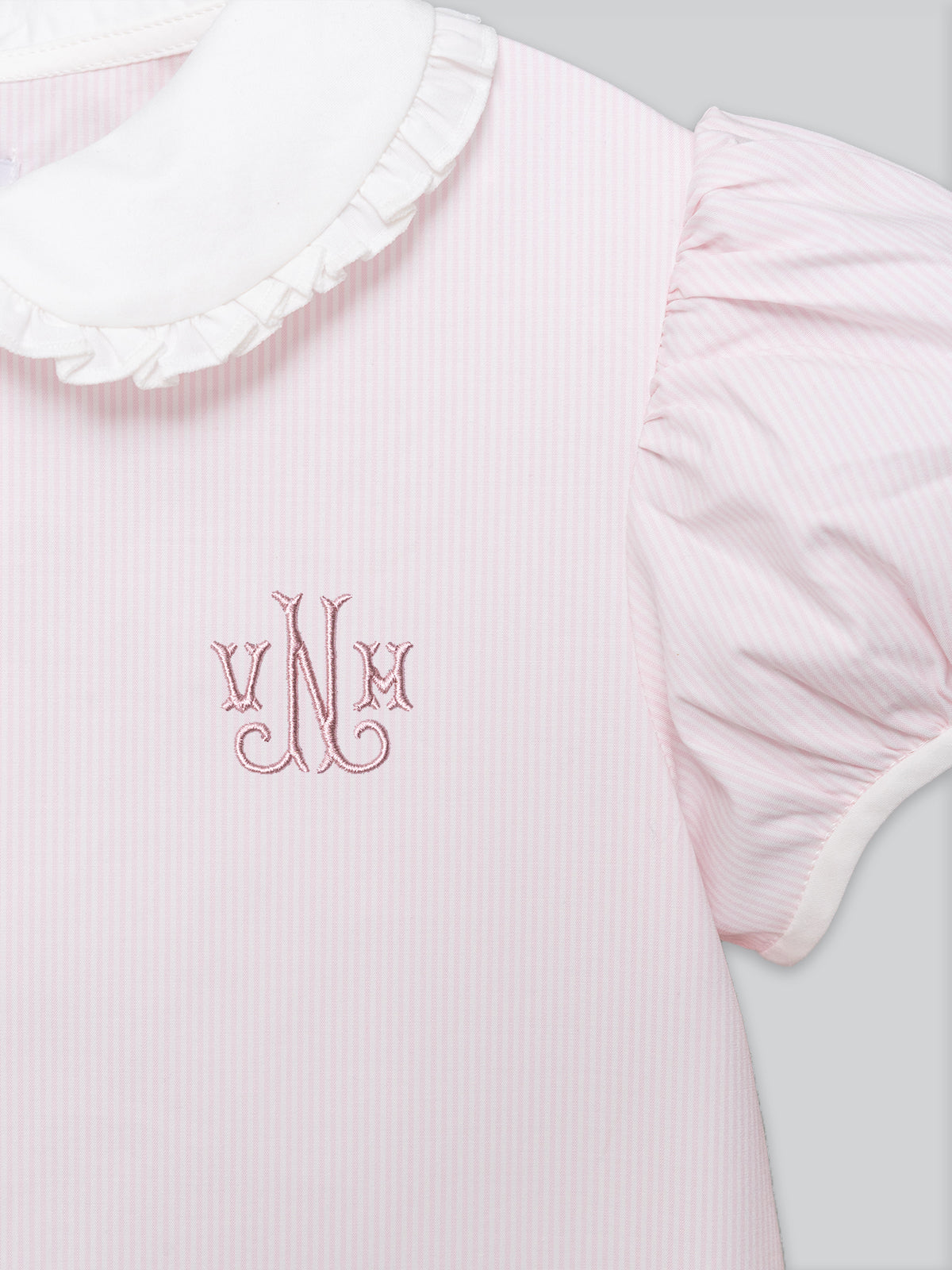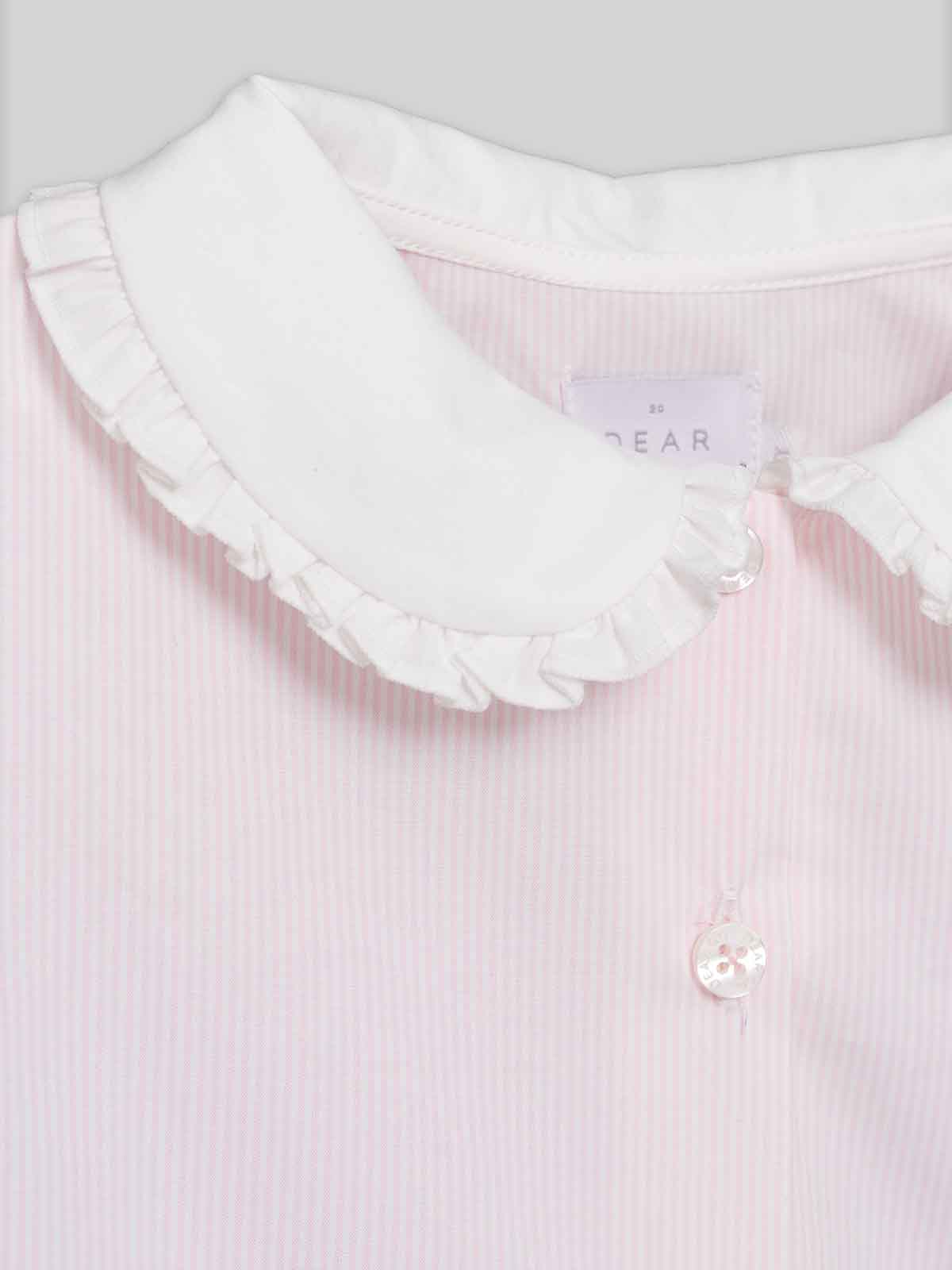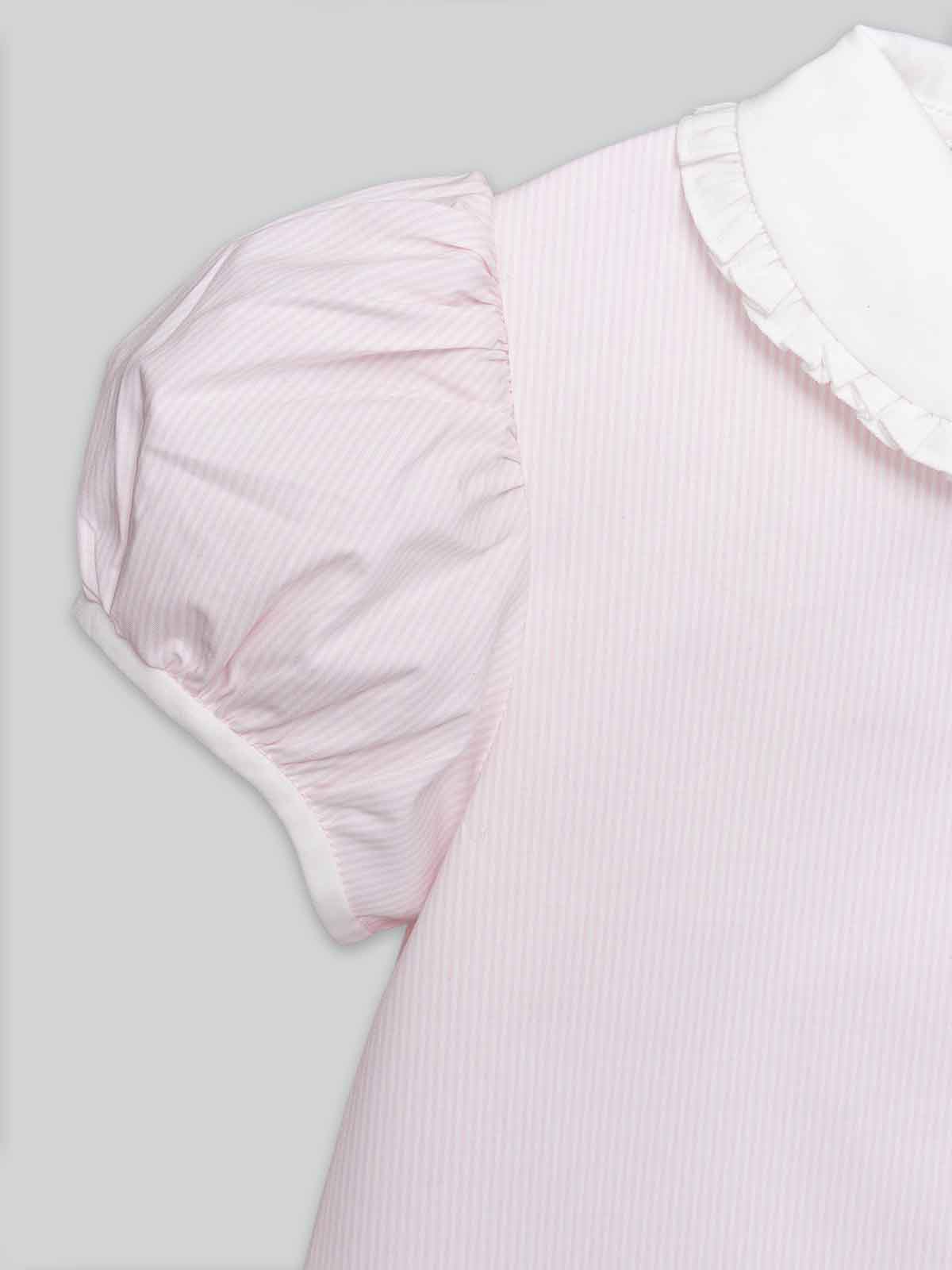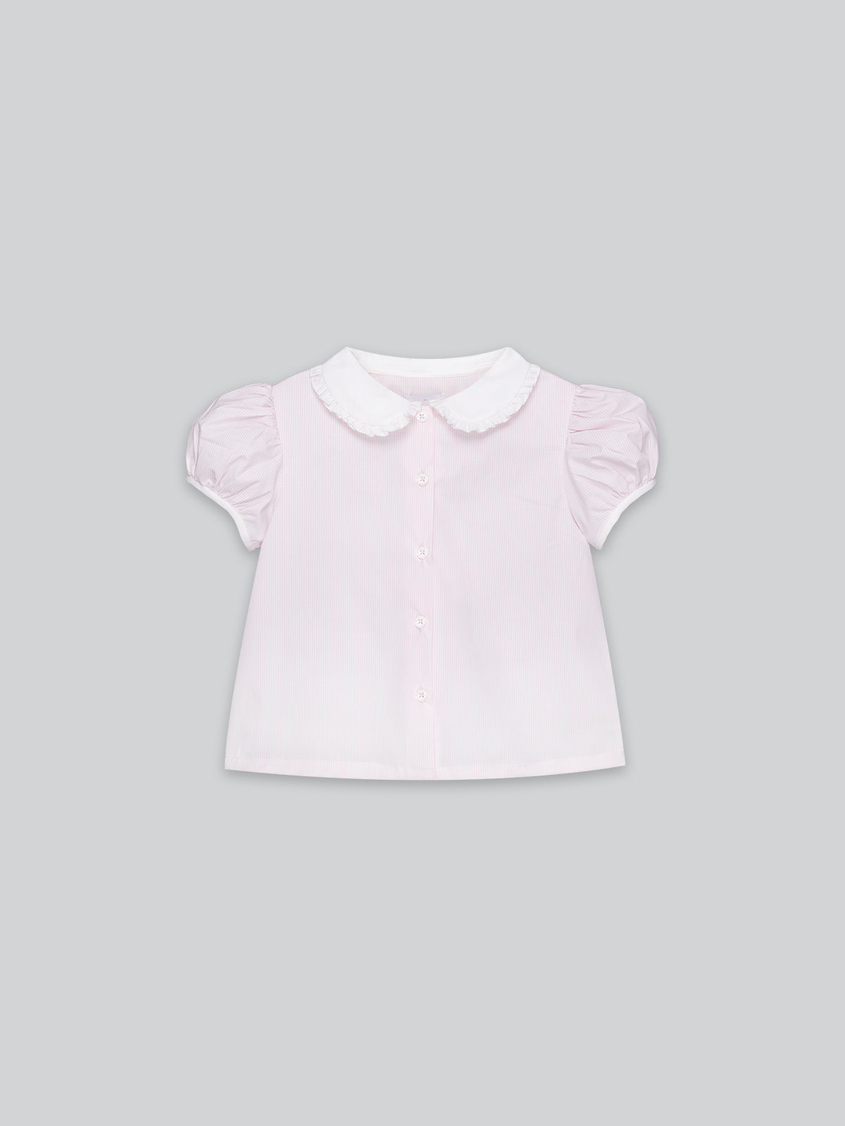 The Sweetheart Puffed Sleeves Shirt in Powder Pink Stripes