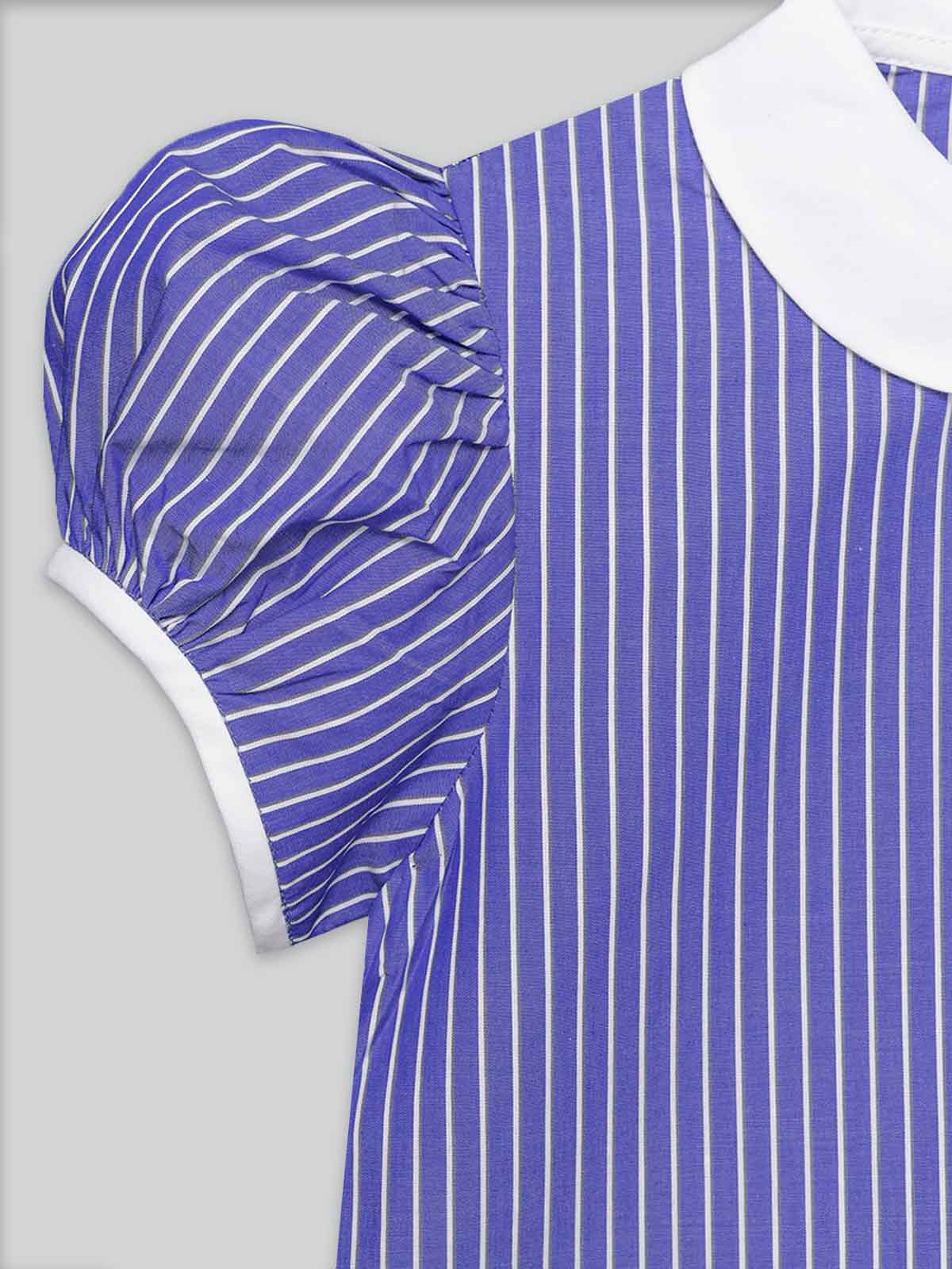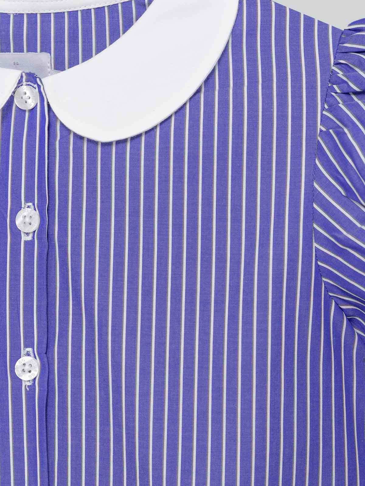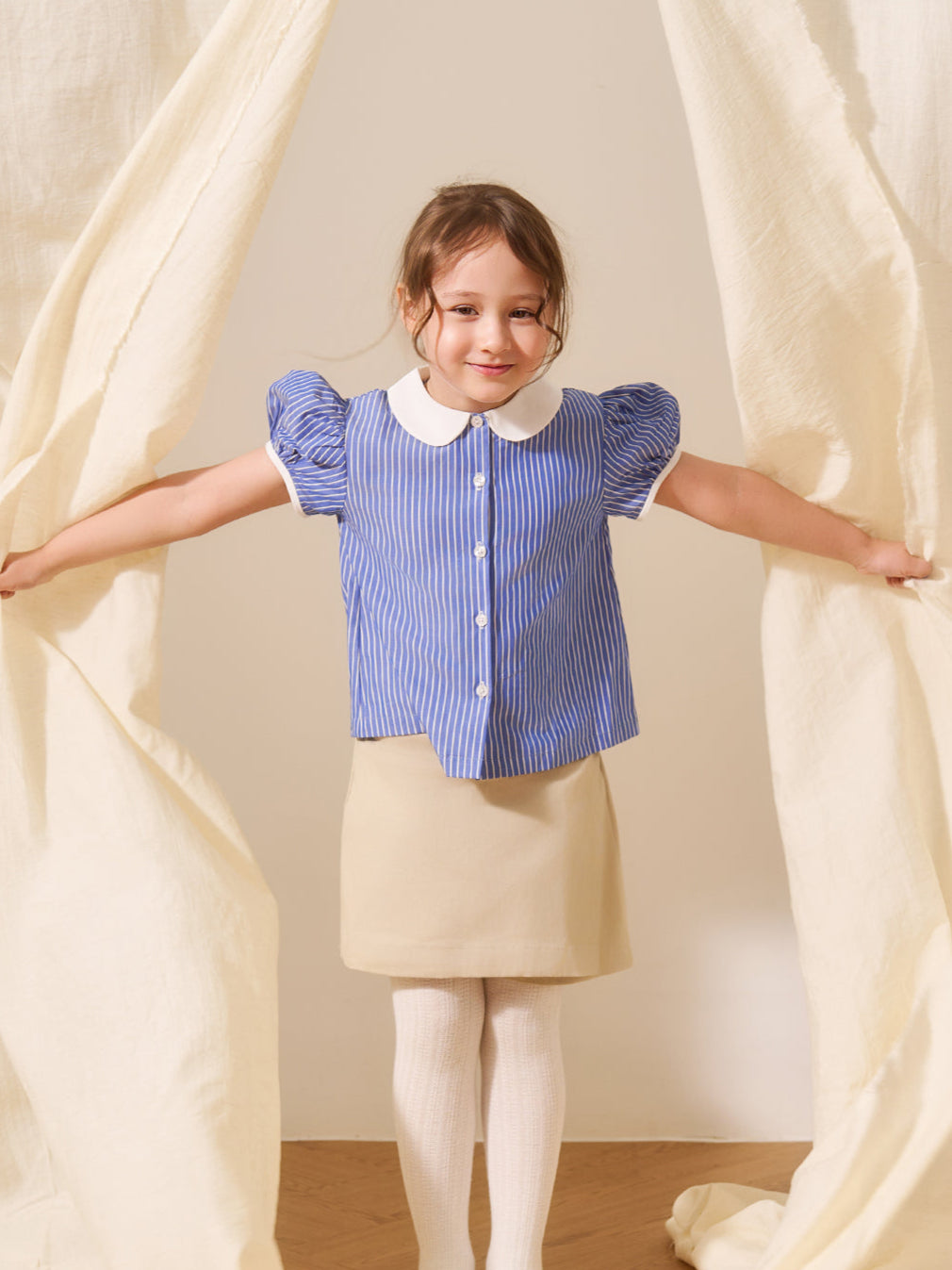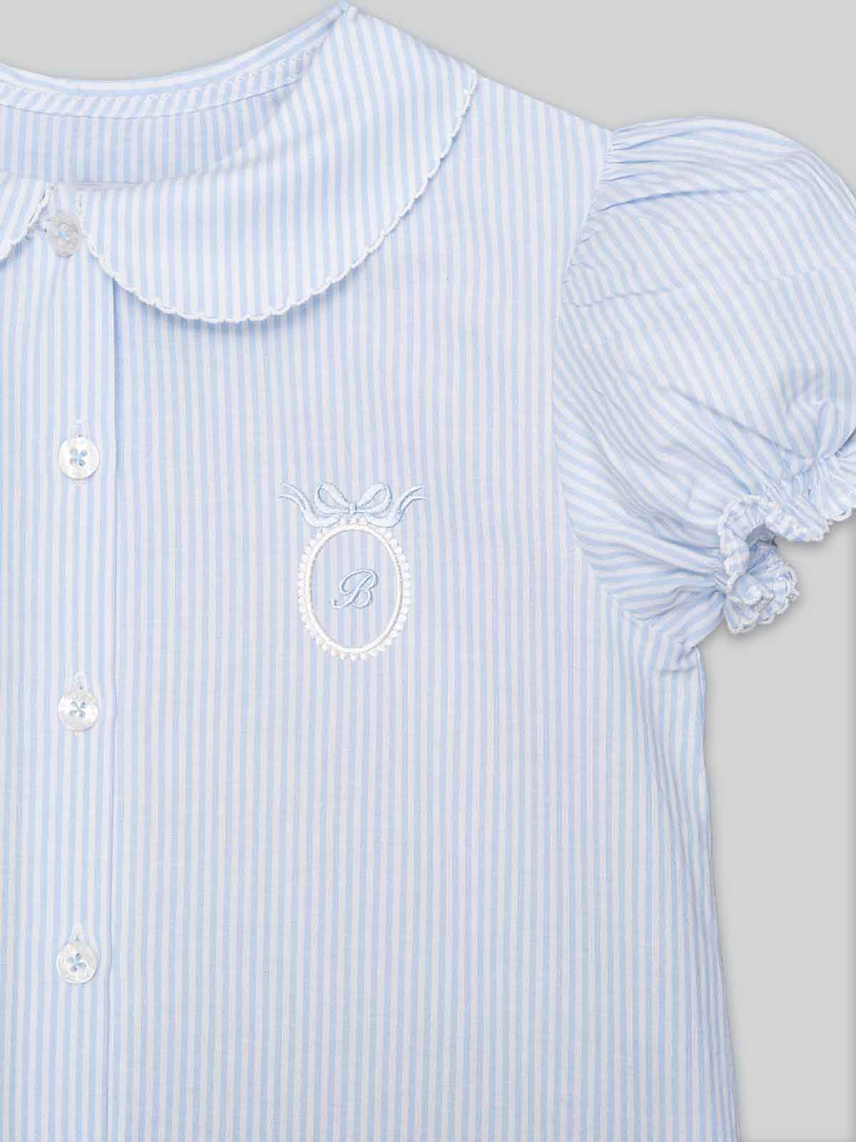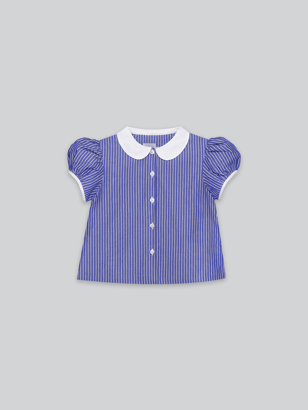 The Sweetheart Puffed Sleeves Shirt in Powder Blue Stripes