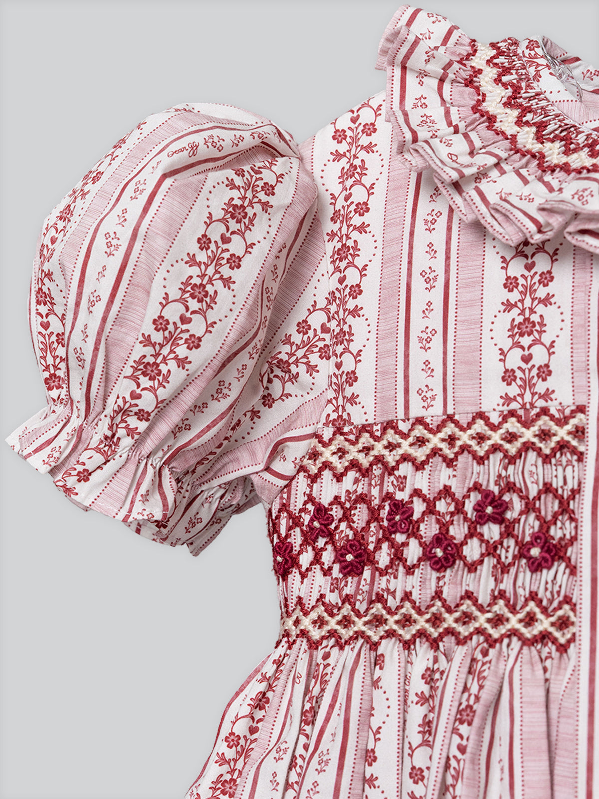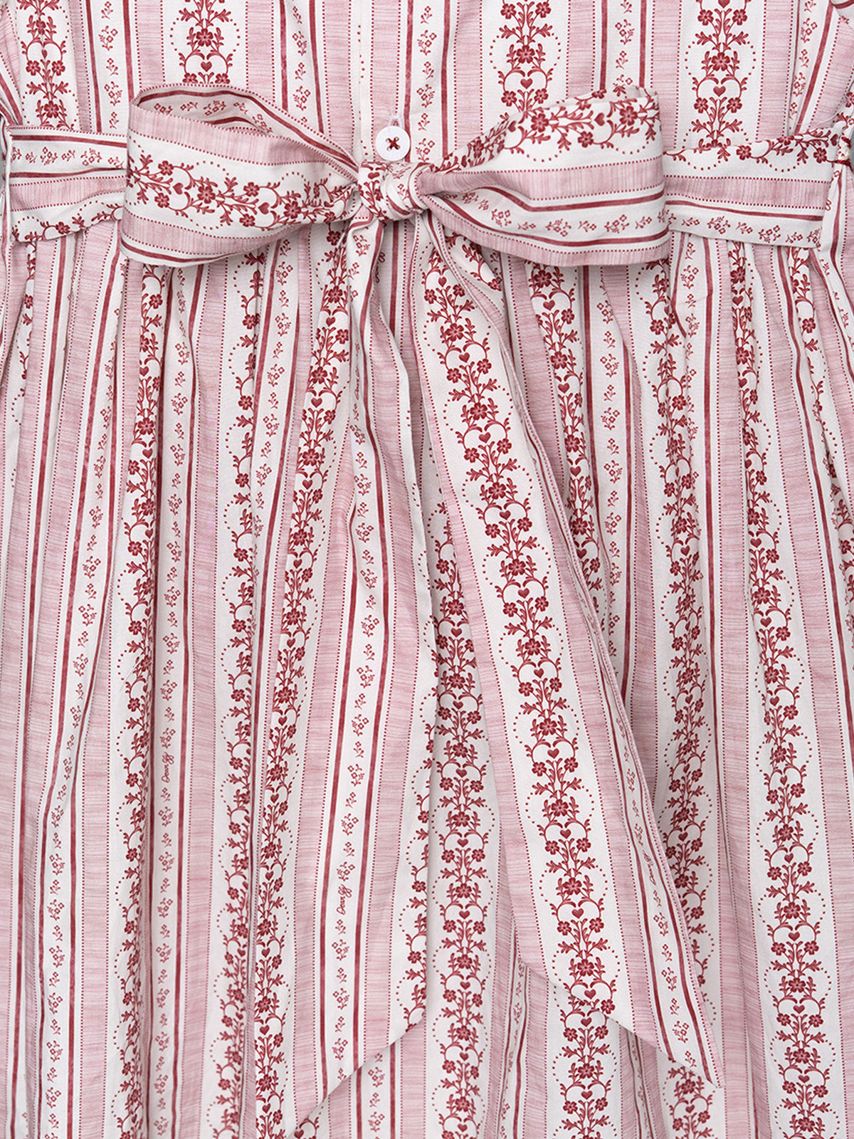 The Sweetheart Puffed Sleeves Shirt in Powder Pink Stripes