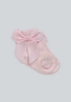 Mid-Length Grosgrain Bow Cotton Socks in Baby Pink