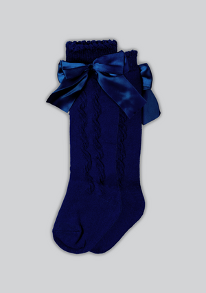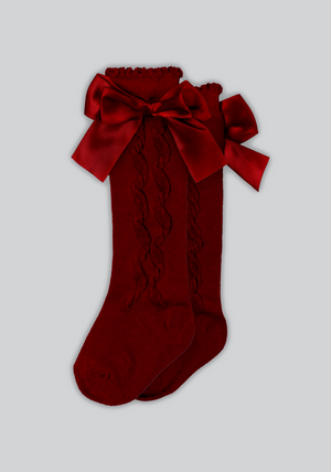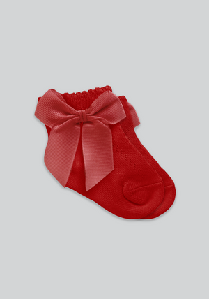 Mid-Length Grosgrain Bow Cotton Socks in Scarlet Red