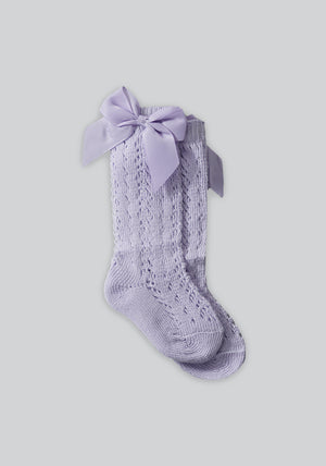 Mid-Length Grosgrain Bow Cotton Socks in Lilac