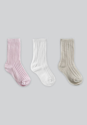 Mid-Length Grosgrain Bow Cotton Socks in Dusty Pink