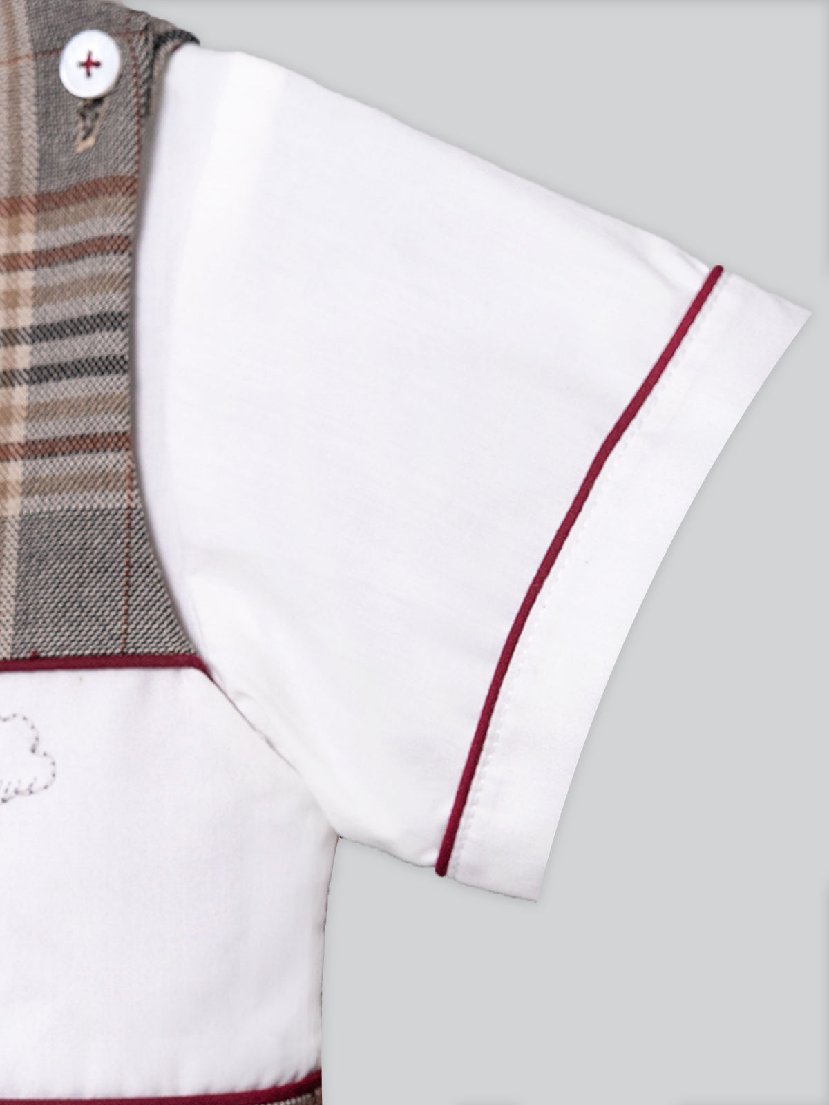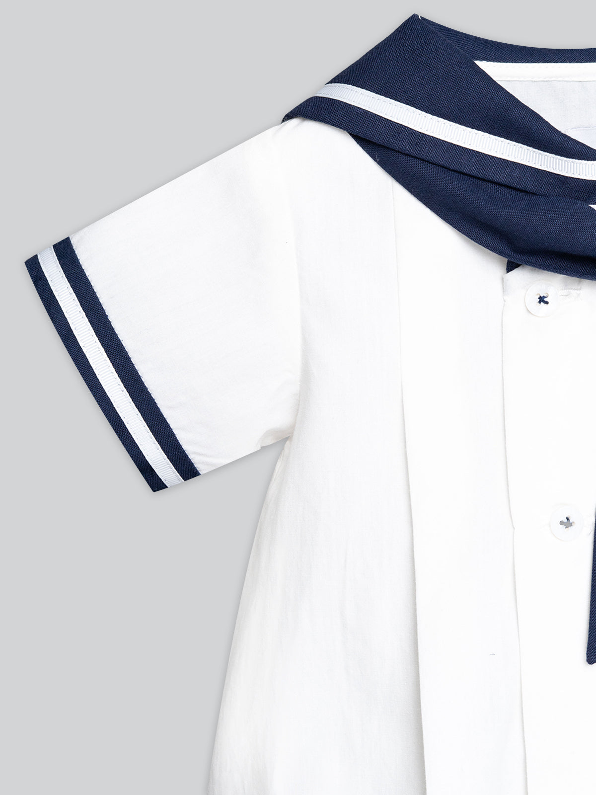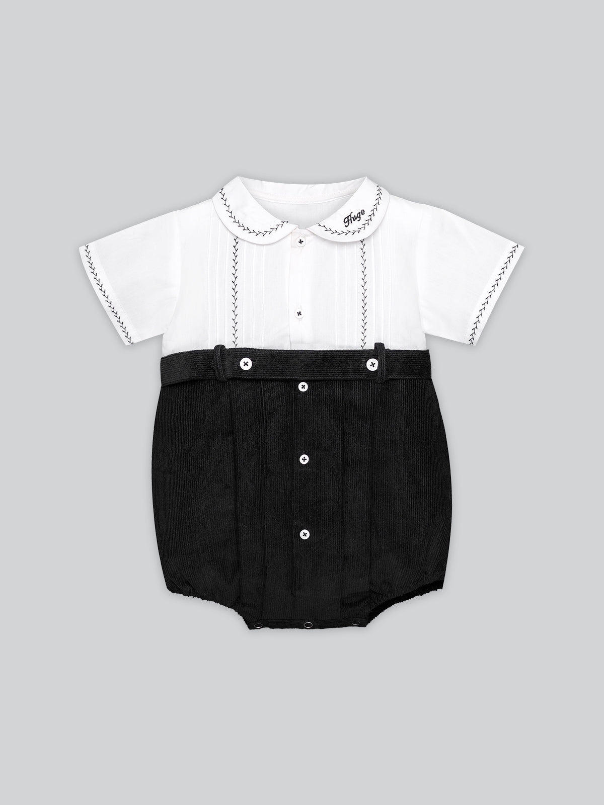 Luxury boys’ rompers responsibly crafted in soft cotton fabrics. Comfortable and stylish, perfect for play, portraits, and early milestones.