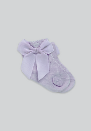 Mid-Length Grosgrain Bow Cotton Socks in Lilac