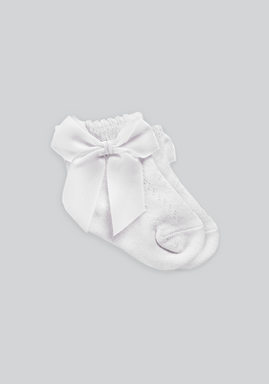 Mid-Length Grosgrain Bow Cotton Socks in Pure White