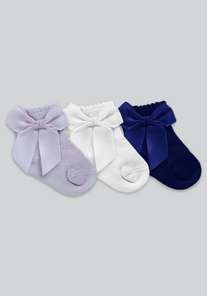 Set C - Mid-Length Grosgrain Bow Cotton Socks - Set of 3