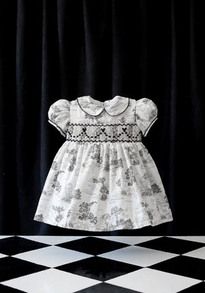 The Grand Toile collection has become a Dear GG's classic. With our signature hand illustrated toile de jouy pattern, it is a refined collection blending heritage prints with modern silhouettes, with added elegant details like smocking, embroideries, and personalised monograms.