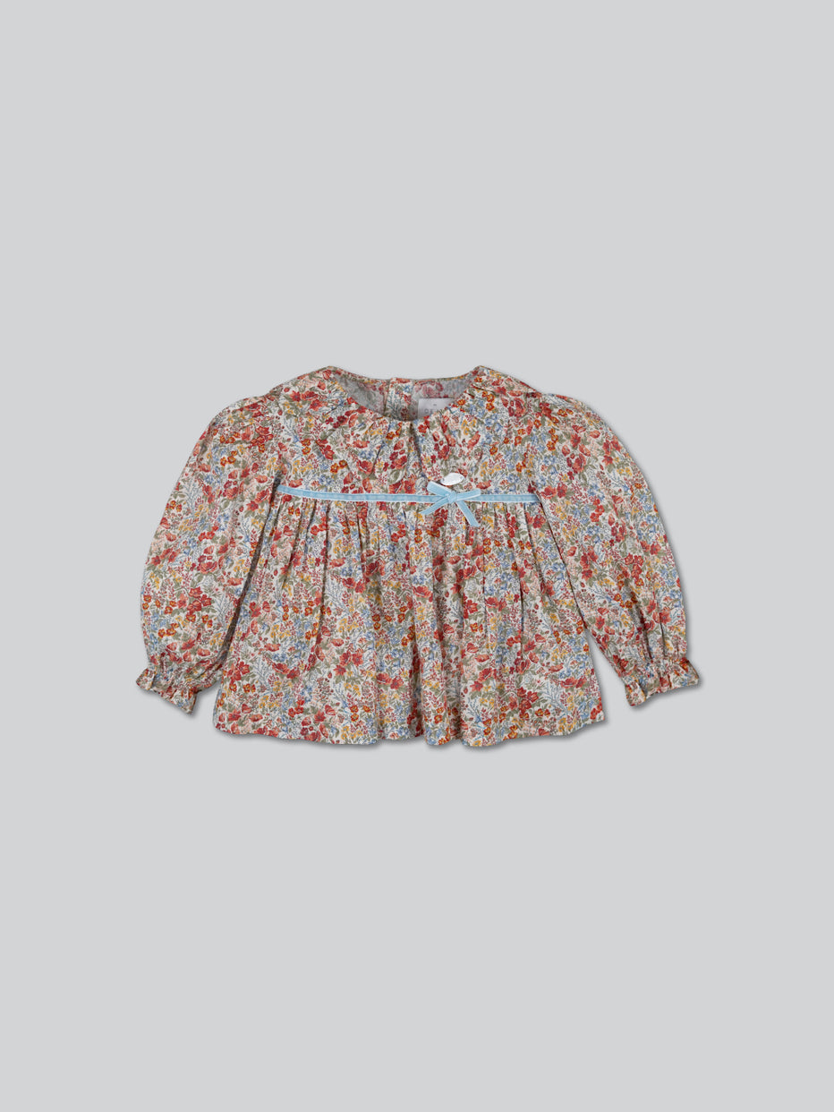 Embellished with ruffles all-throughout the collar and sleeves, the Maple Top is a sweet and feminine piece, featuring our collection exclusive Bohème print, and signature baby blue velvet ribbon. Pair it with shorts/skirt for a relaxed look, or dress it up with trousers for formal occasions!