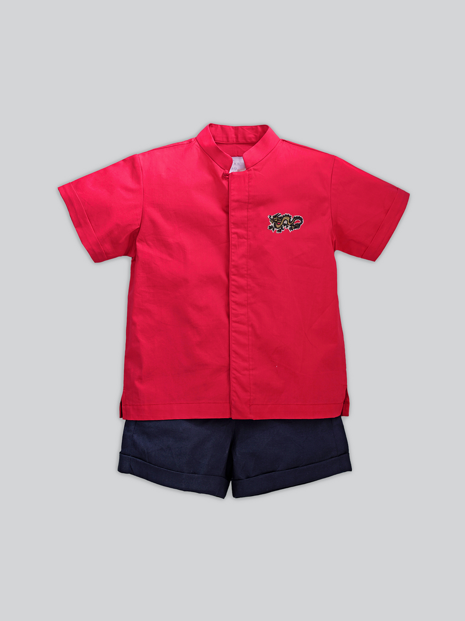 Meet our Orient Set, a simple yet modern look on the classic Mandarin Cheongsam with shorts for baby and older boys. The classic gingham shirt features piping details, knot button, and Mandarin collars for that festive look. While the pants features an elasticated waistband and a pocket on each sides. Choose between initials or Chinese zodiacs for the complimentary embroidery on the chest.