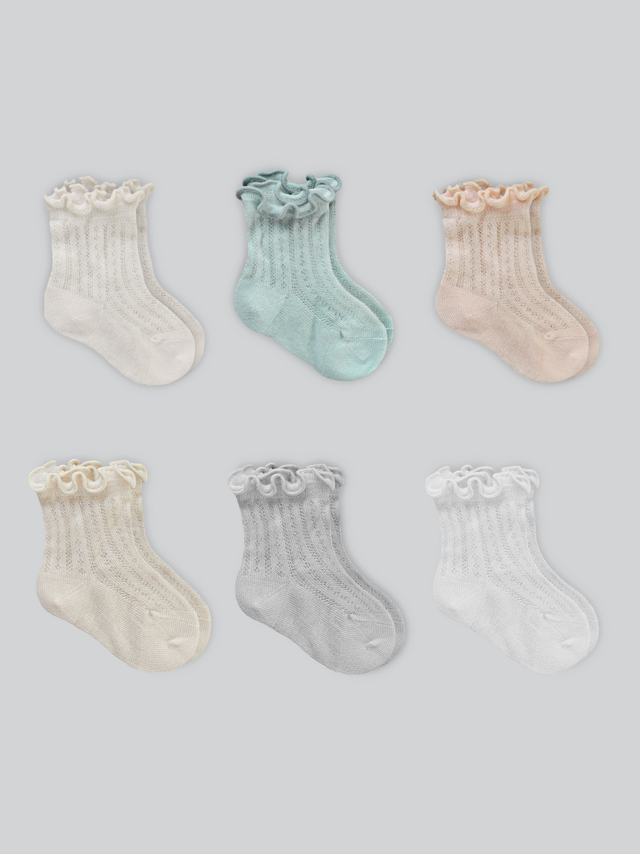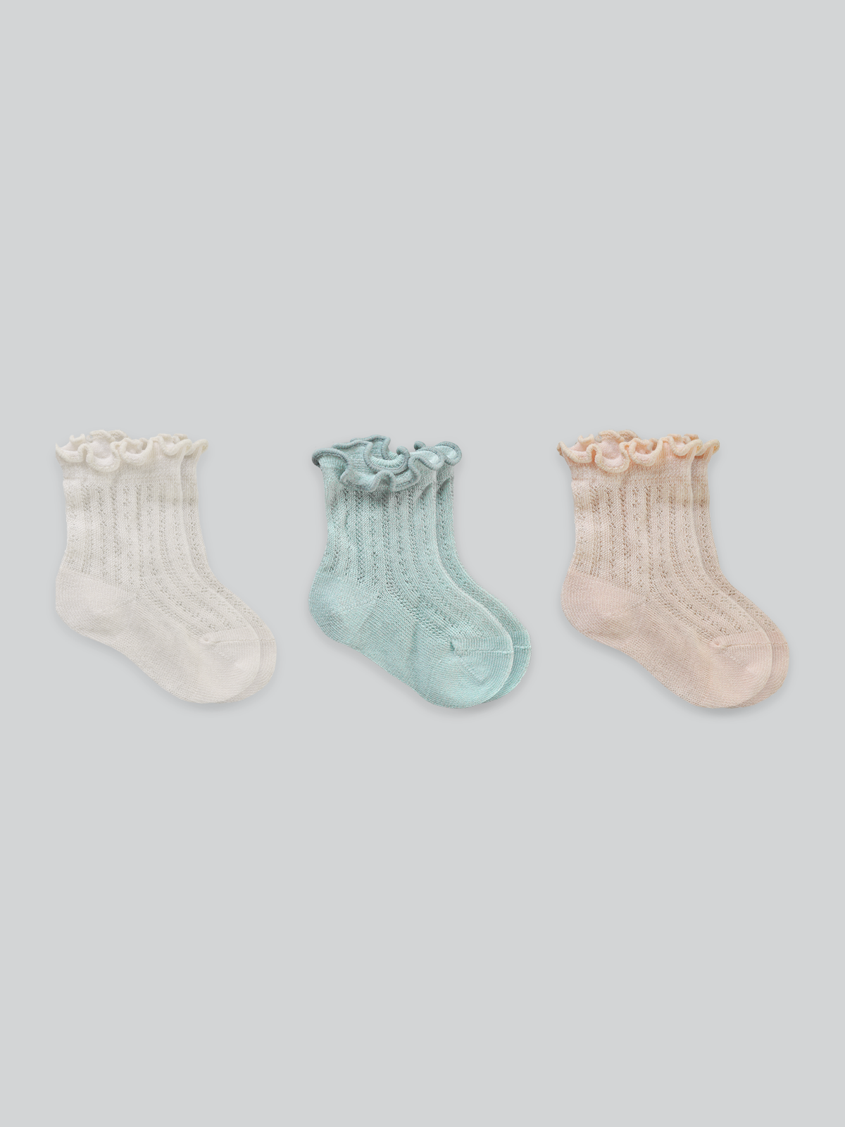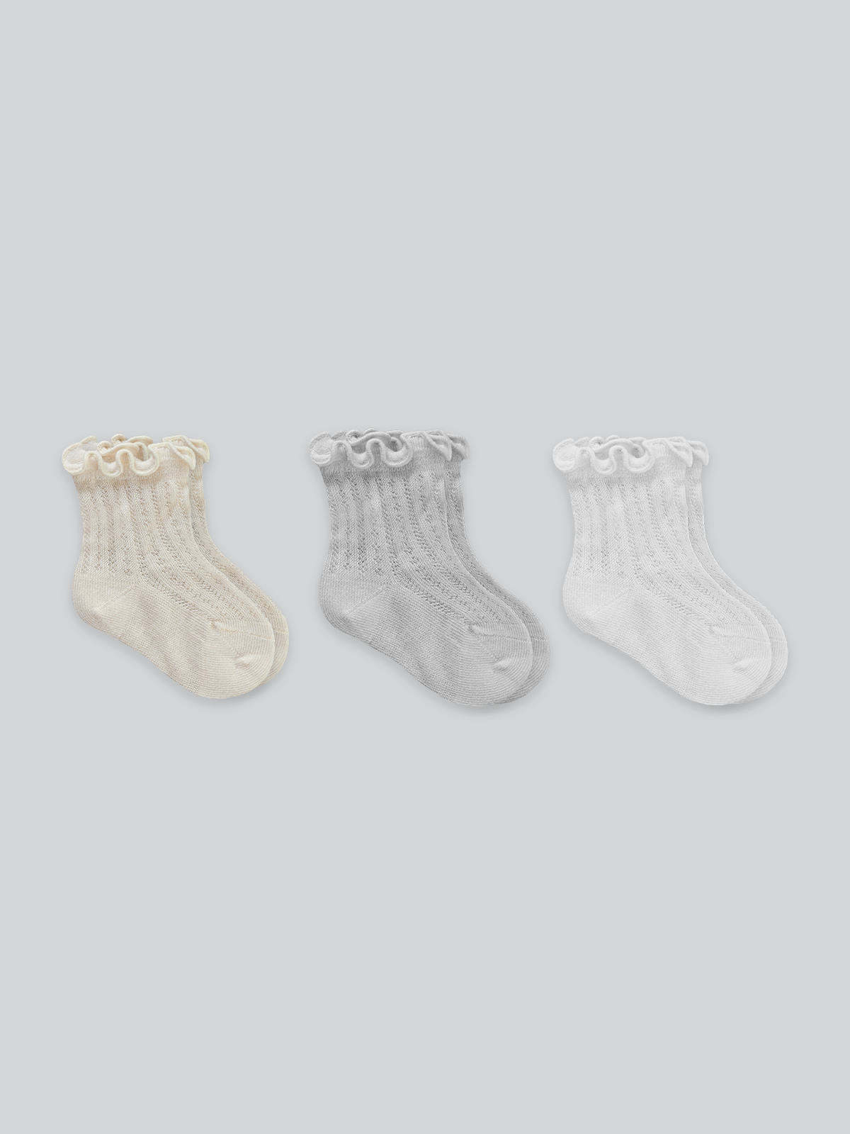 Extremely delicate, soft, and beautiful cotton mesh socks. With soft ruffles, this ankle-length socks comes in set of 3.