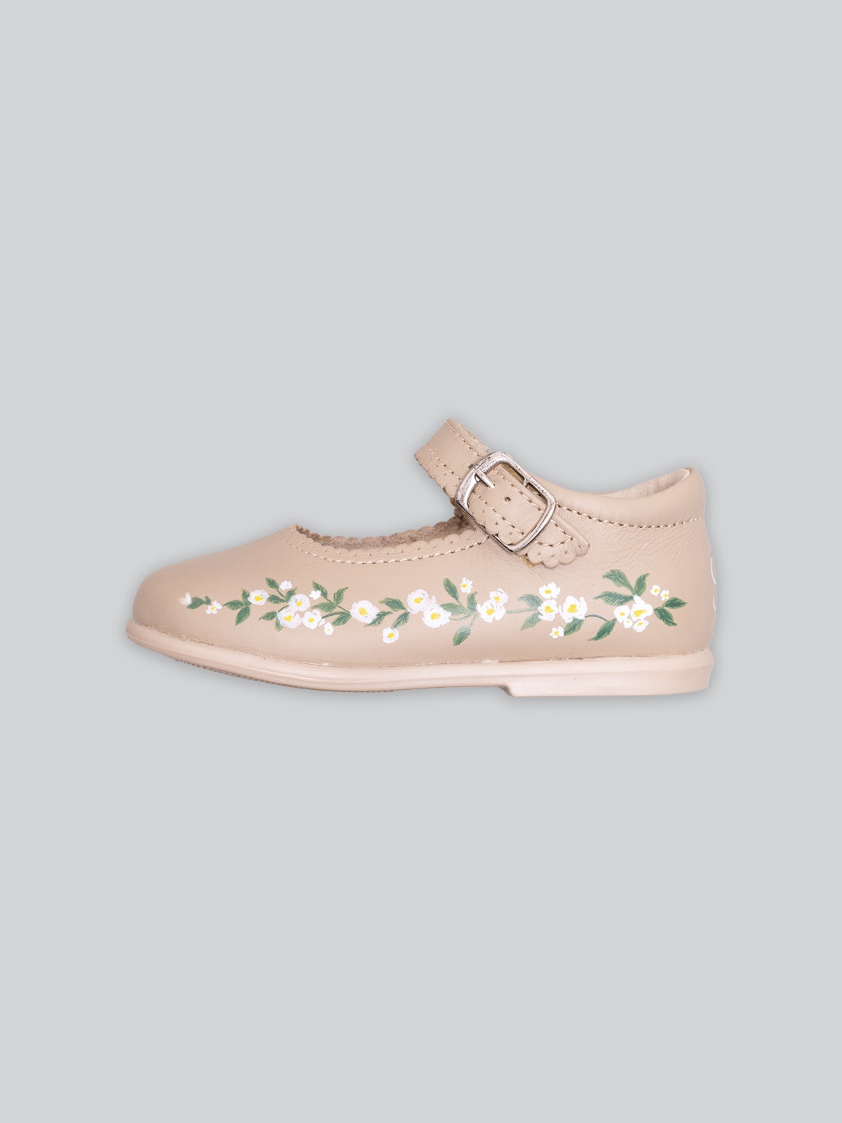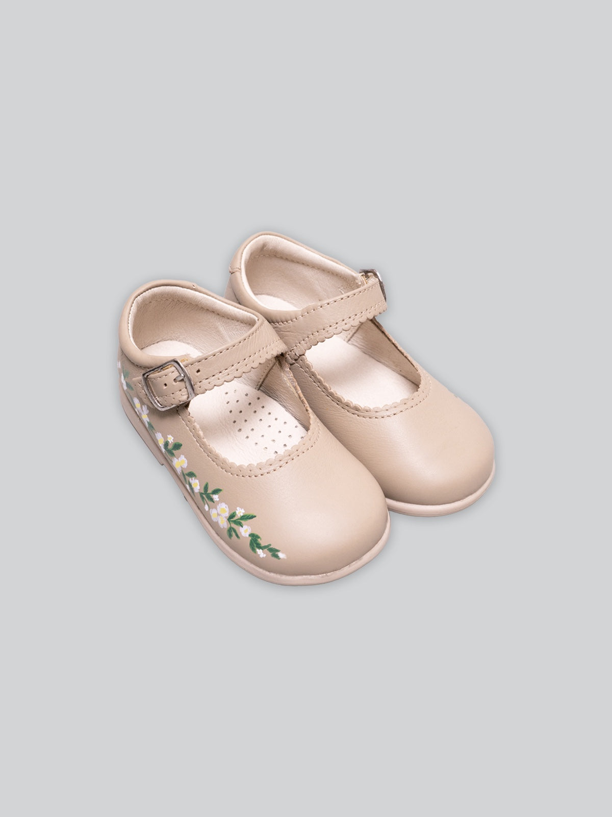 Introducing Summer Blooms Hand Painted Shoes in Beige from our artisan collection, Paired and Painted. Each pair is meticulously hand painted by local artisan on our hand made Mary Jane style shoes. Made in timeless beige leather, they are soft and comfortable, with leather lining and a sweet strap over the foot that fastens with a velcro. With a slight cushioned insole, and a non-slip rubber sole, this is definitely the best shoes for your sweetheart!
