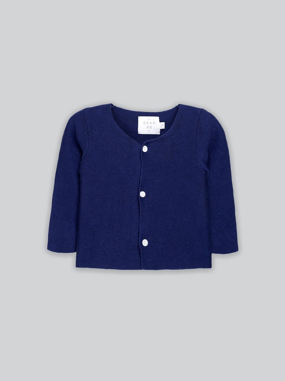 The ultimate cotton cardigan by Dear GG. This unisex delicate and soft cardigan features mother of pearl buttons, making it a sweet addition to your little one's wardrobe. Knitted with soft and light-weight cotton yarn, that is ideal for the baby's sensitive skin.