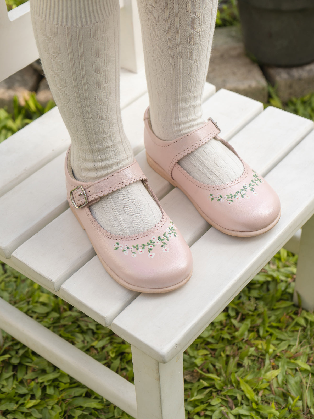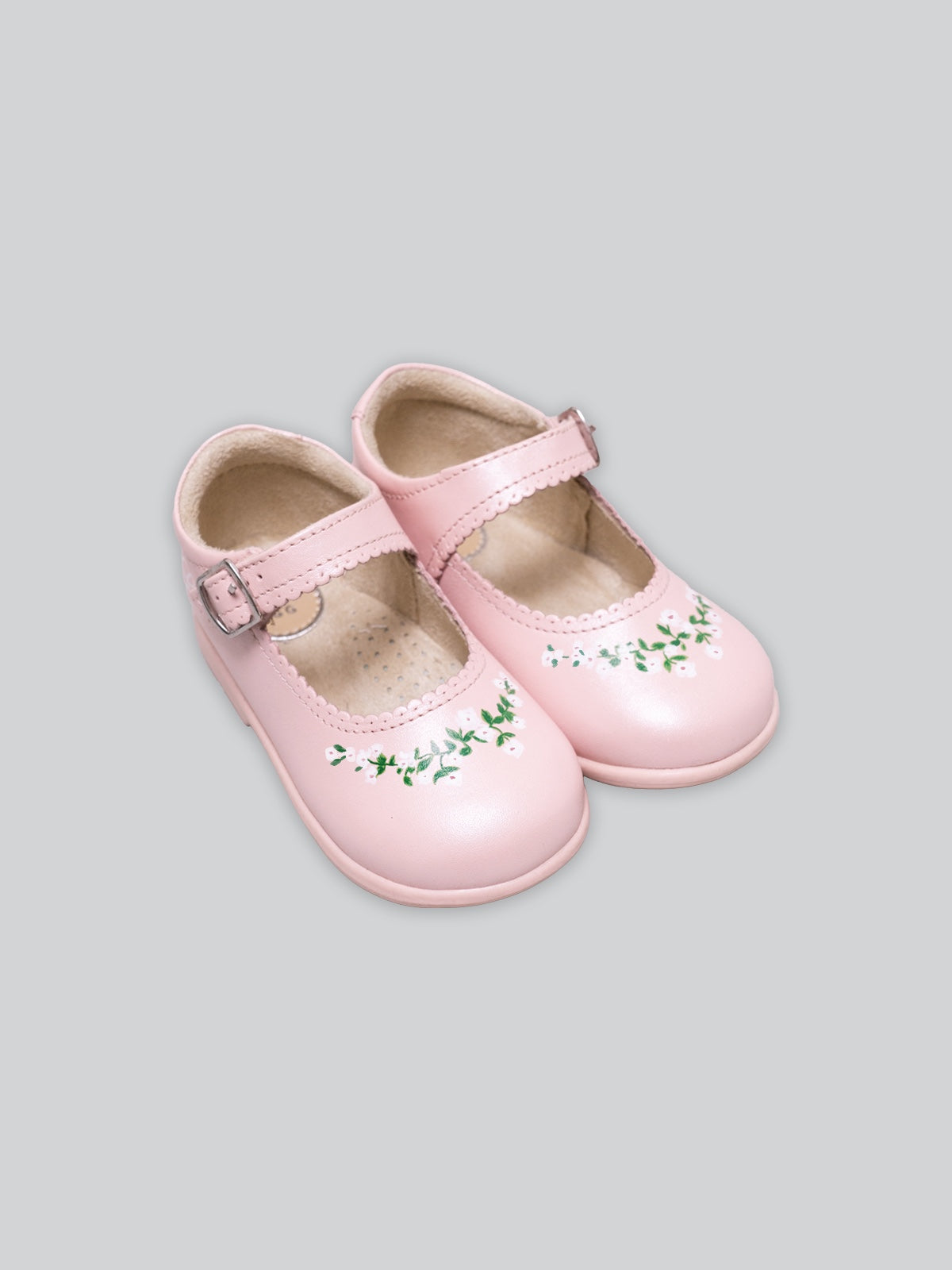 Introducing Wildflower Hand Painted Shoes in Baby Pink from our artisan collection, Paired and Painted. Each pair is meticulously hand painted by local artisan on our hand made Mary Jane style shoes. Made in timeless beige leather, they are soft and comfortable, with leather lining and a sweet strap over the foot that fastens with a velcro. With a slight cushioned insole, and a non-slip rubber sole, this is definitely the best shoes for your sweetheart!